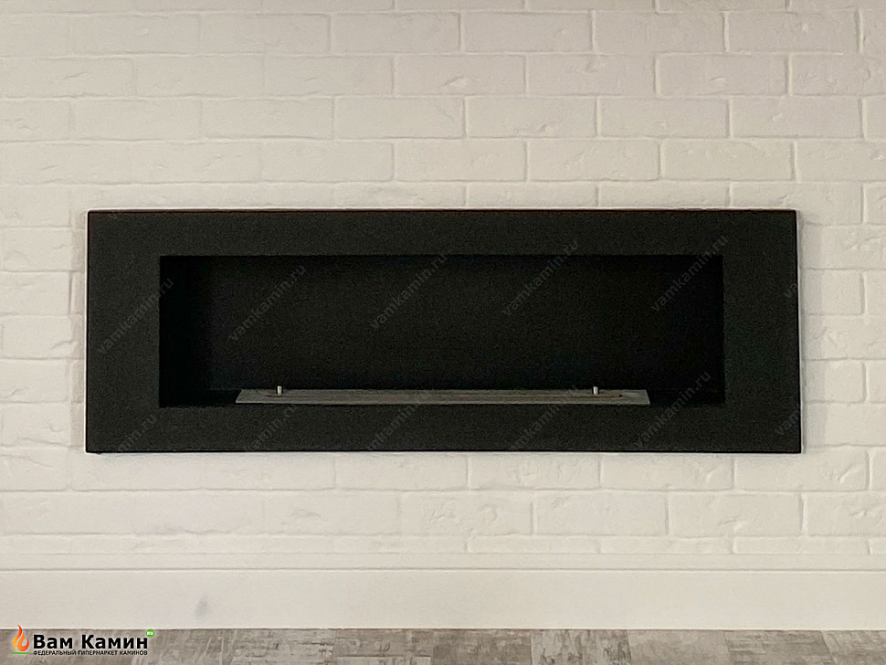 Биокамин в нишу SteelHeat LONG 1200 Small хорошо вписался в нишу, стилизованную под кирпичную кладку. Акцент на белом фоне с помощью биокамина черного цвета - это всегда беспроигрышный вариант. 600 мм равна линия огня у такого экокамина. Поэтому помимо декоративного элемента в комнате такой биокамин отлично справляется и с функцией дополнительного источника обогрева.